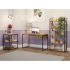 Conjunto de Mesa em L Anah Freijó com Cadeira de Escritório Presidente Giratória com Relax Clark Preta e Dourada