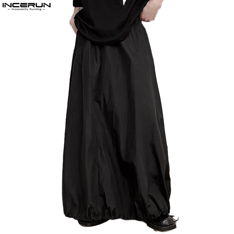 INCERUN Calças De Saia De Perna Larga Em Tubo Reto Preto Escuro De Dupla Camada