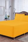 Lençol Para Cama Box Conjugado Dispensa Saia Malha 100% Algodão Casal Padrão 03 Peças Amarelo