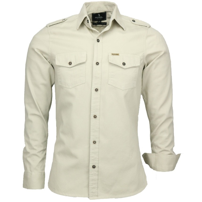 Camisa Masculina Slim Estilo Militar Com 2 Bolso