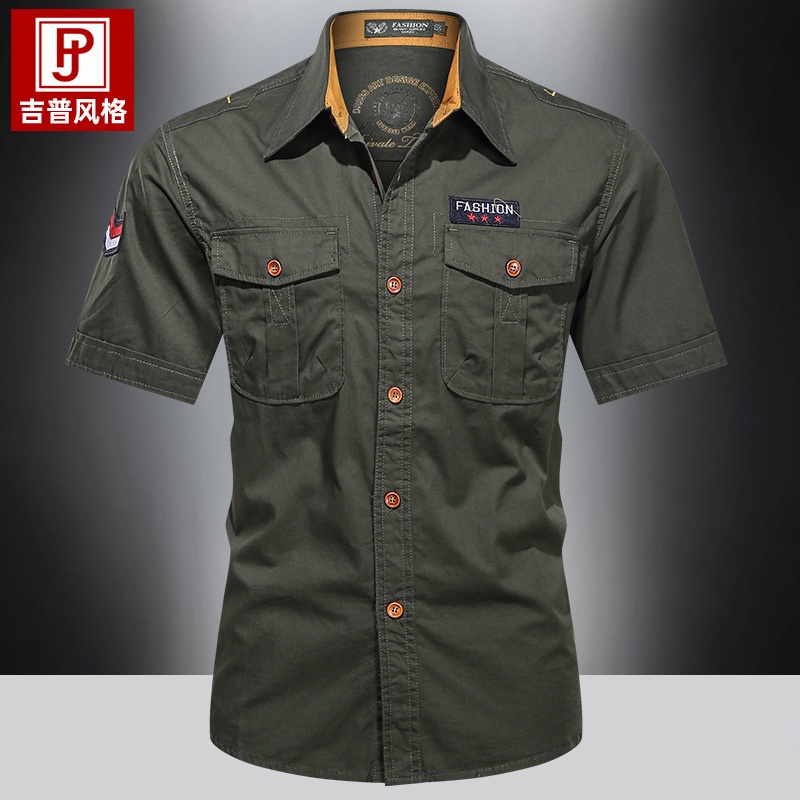 Verão de 2022 casual homens camisa de roupa militar uniforme de algodão puro camisa de manga curta trabalho blusa masculina