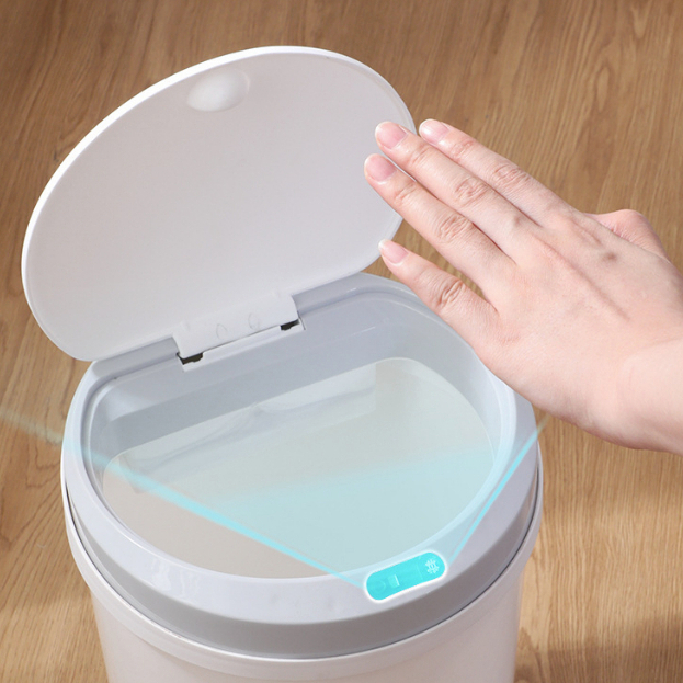Lixeira Automatica Usb Branco Cinza 5 Litros Sensor Proximidade Recarregável Para Banheiro Cozinha Sala Escritório