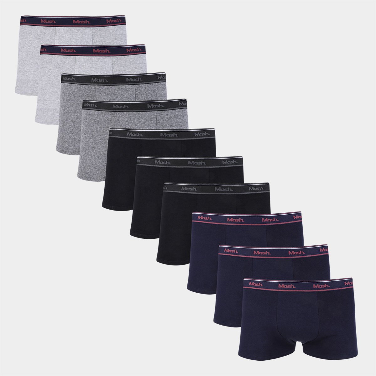 Kit Cueca Boxer Mash Cotton Elástico Masculina 10 Peças