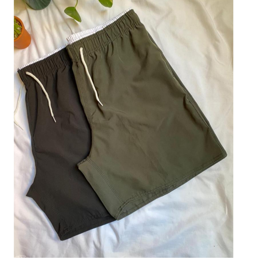 Kit 2 Shorts Masculino Bueno Liso Básico Leve Bermuda Masculina com Elástico e Cordão Ajustável na Cintura Bolsos Laterais Secagem Rápida Ideal Para Corrida Caminhada Bike Academia Treino ou Uso Casual Festa Lazer Piscina Praia Viagem Verão Preto e Bege