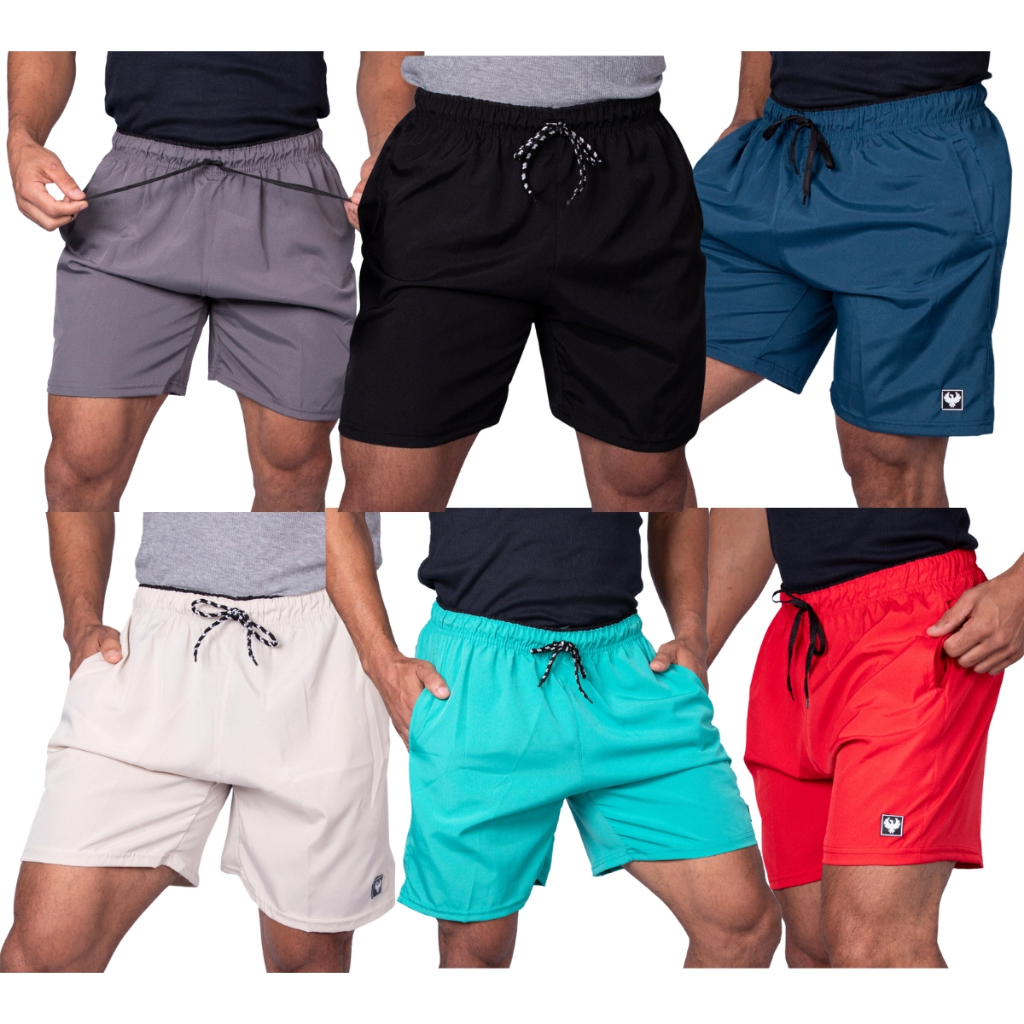 Kit 3 Short Tactel Masculino 3 Bolsos Elástico Cordão Liso Academia Bermuda Calção Musculação Calção