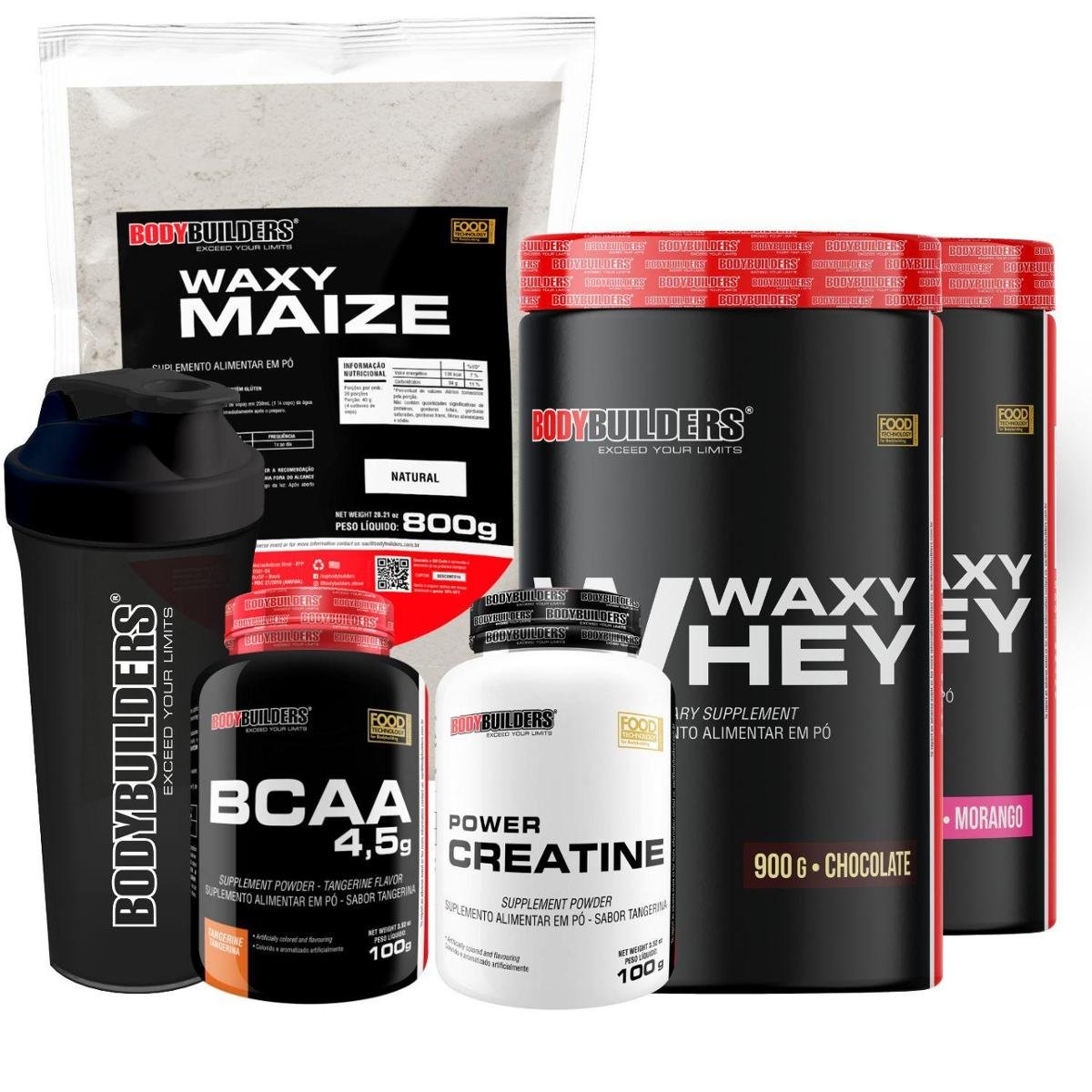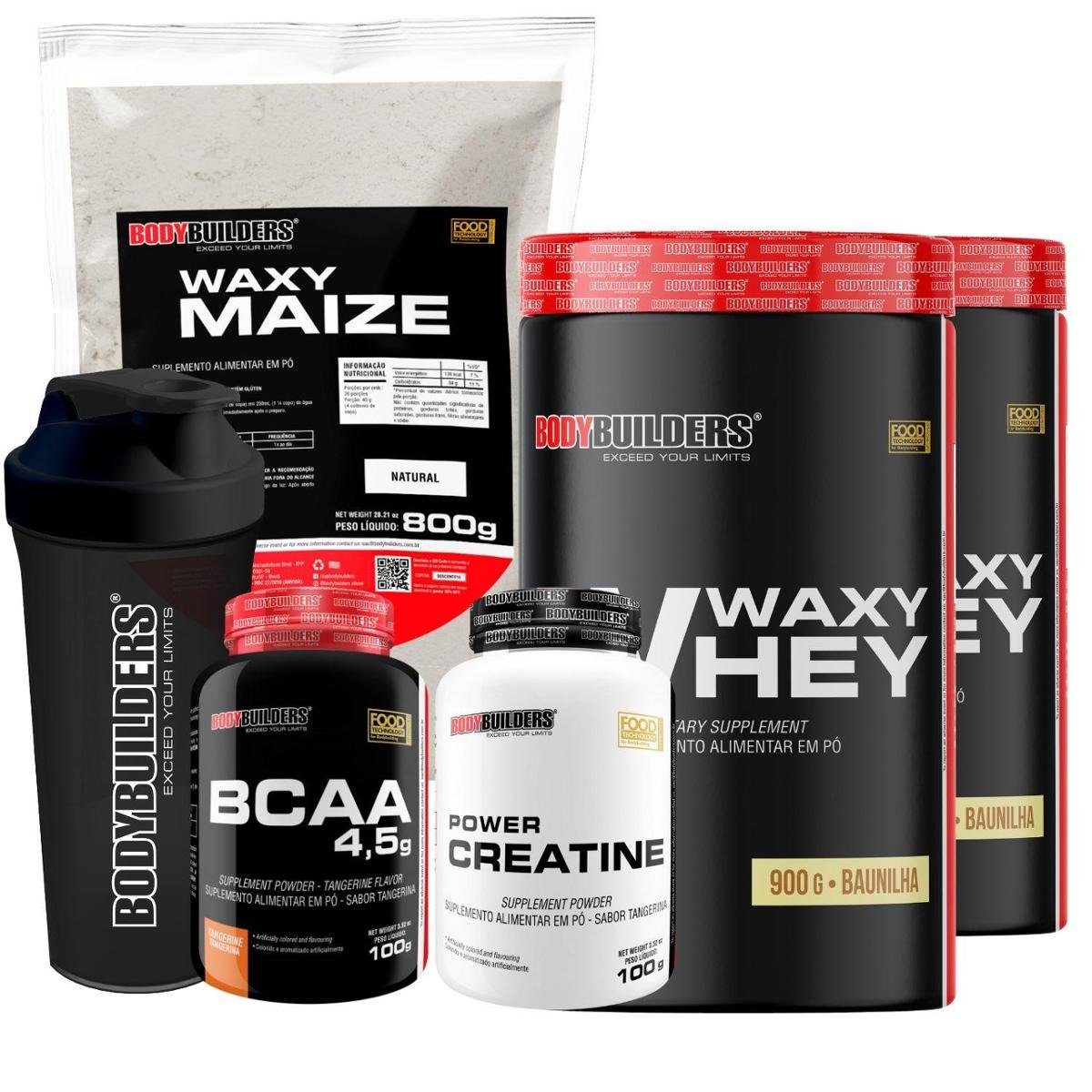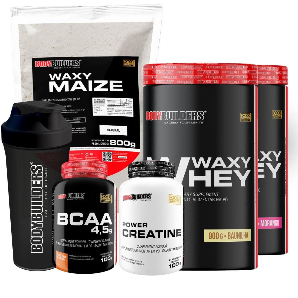 Kit 2xWhey Protein Waxy Whey 900g+1x BCAA 4,5 100gr + 2 x Creatina 100gr+ coqueteleira-Bodybuilders