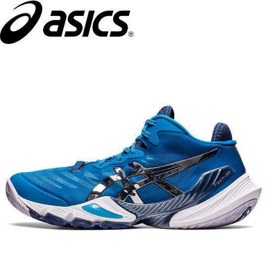 (Masculino) Asics Metarise 3% Island Blue Pure Silver Conforto profissional de absorção de choque tênis de vôlei de alta banda