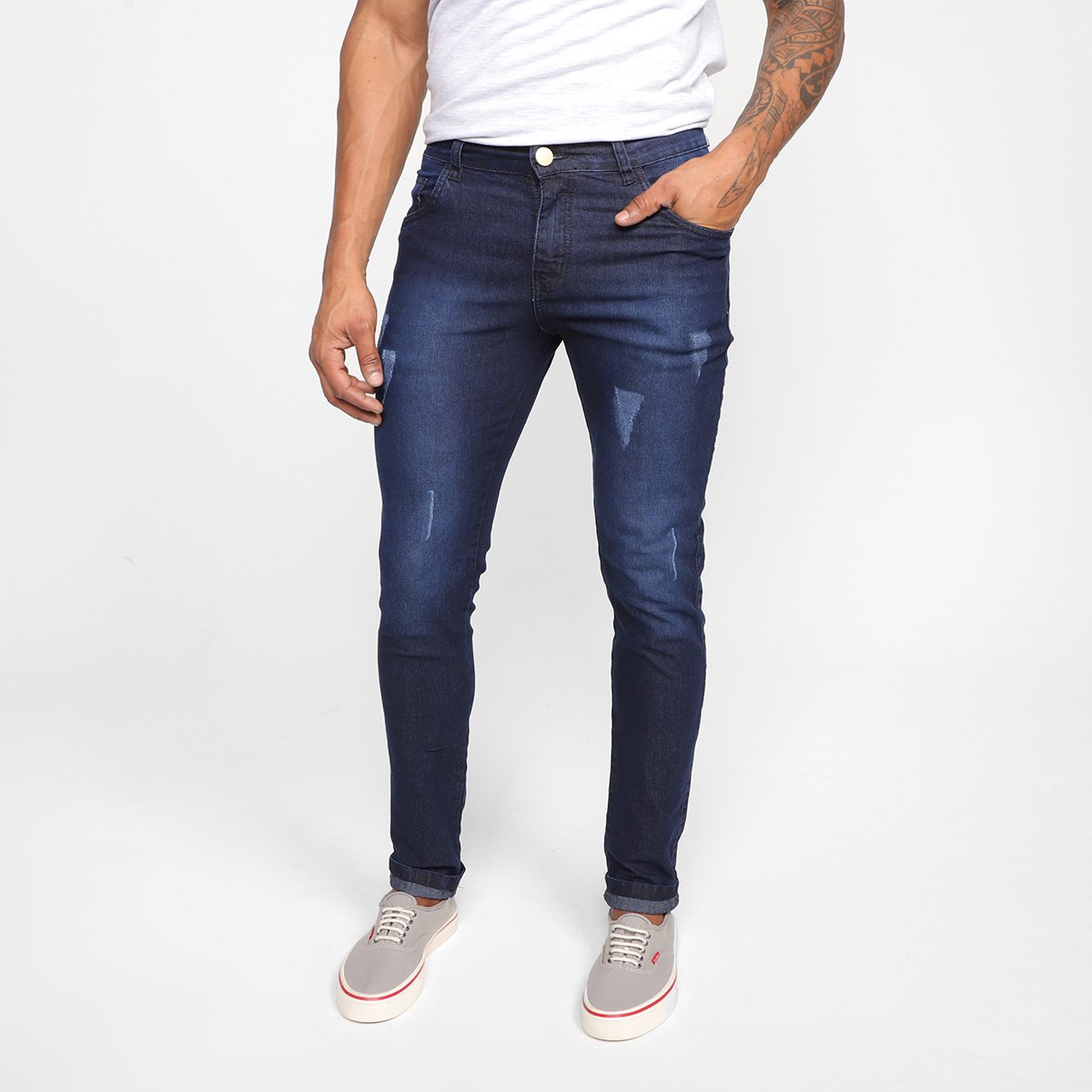 Calça Jeans Skinny Terminal Com Puídos Masculina