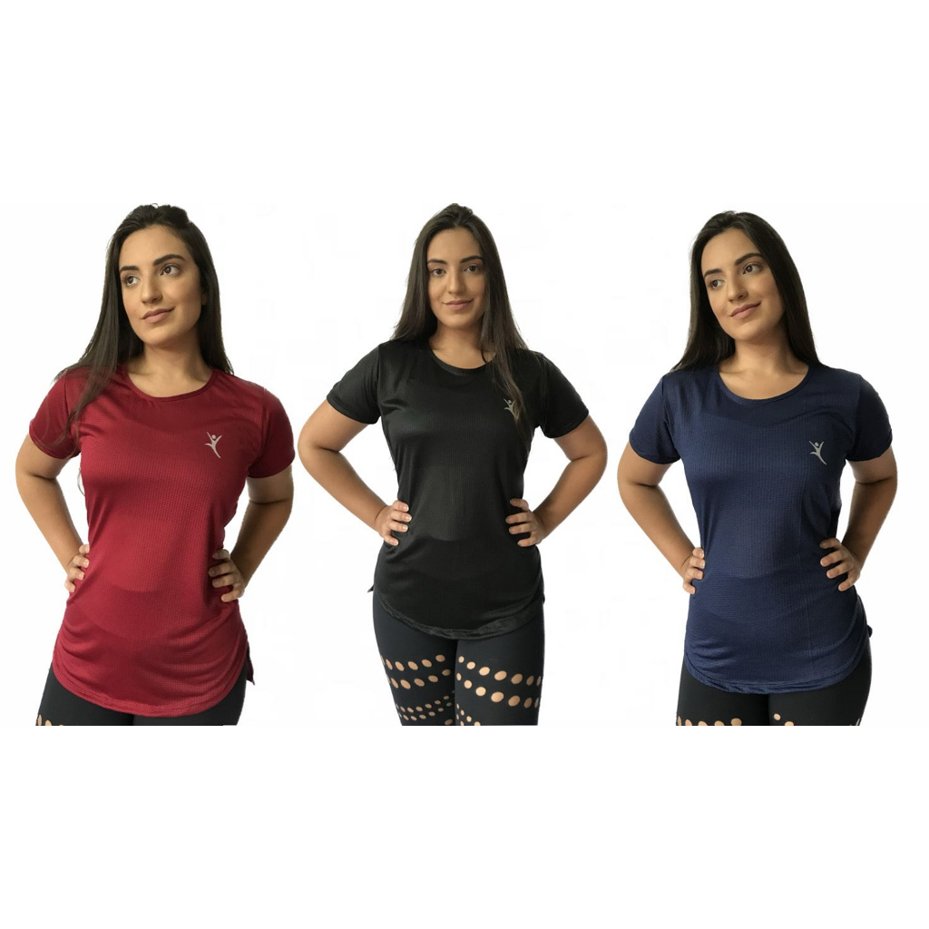 Kit 3 Blusa Academia Feminina Long Line Dry Fit Camiseta Sobre Legging