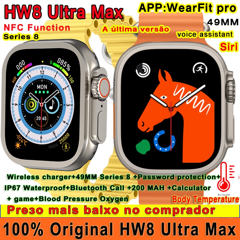 Smartwatch Relógio Inteligente Original HW8 Ultra Max Series 8 NFC 49MM Temperatura Corporal Bluetooth Chamada Glicose No Sangue
