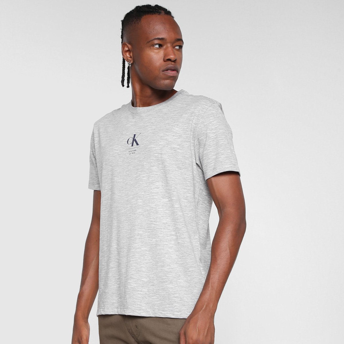 Camiseta Calvin Klein Jeans Masculina New York City CK Square Cinza Mescla