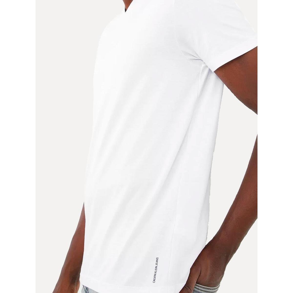 Camiseta Calvin Klein Jeans Masculina Gola V Essentials Logo Lateral Branca