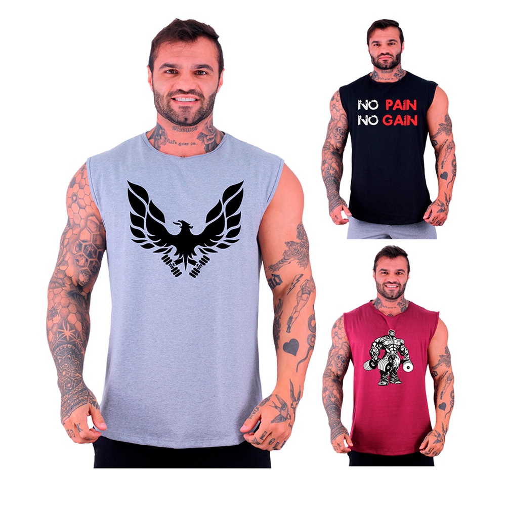 Kit 3 Regatas Machão Longline Masculina MXD Conceito Academia Musculação Casual Estampas Exclusivas