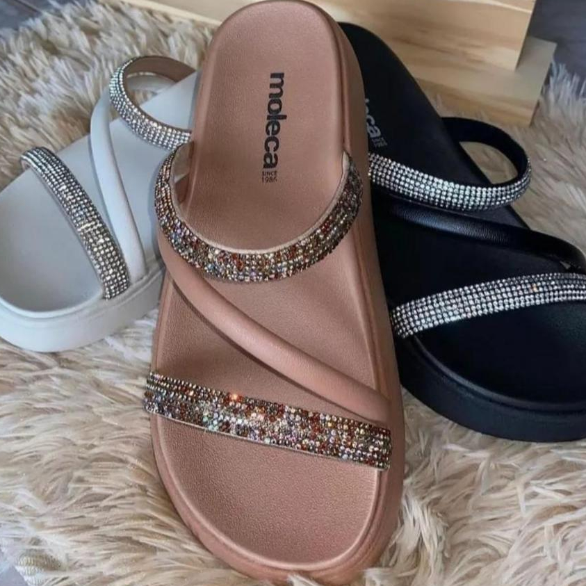 Ref. 5469.121 - Sandália Papete Feminina Flat Duas Tiras Strass Moleca