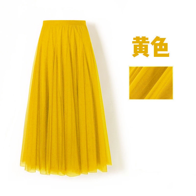 [3 Camadas] Saia Feminina De Malha Laranja De Cintura Alta E Fina Elástica De Verão Com Corte Em Trapézio Plissada casual maxi