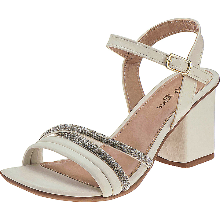 Sandália Feminina Stilo Rosê Salto Grosso Médio Tiras Strass Confortável-8401