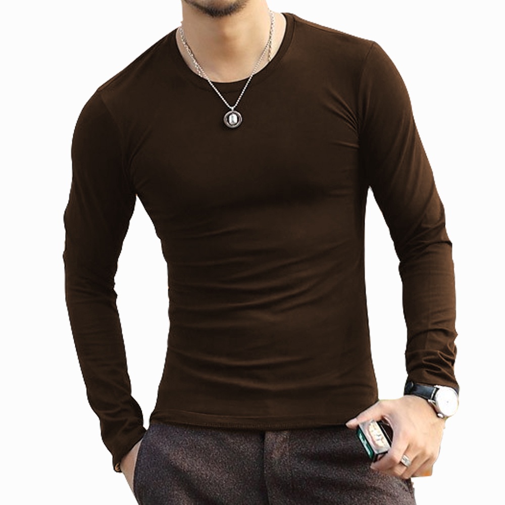 Camiseta Masculina Slim Fit Manga Longa Marrom