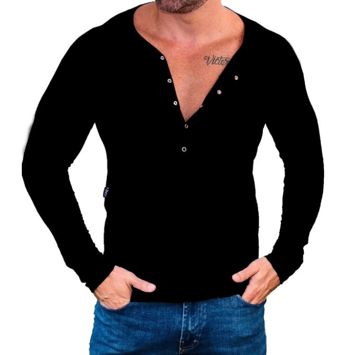 Camiseta Henley Masculina J Silver Slim Fit Manga Longa 2 Botões - 6 CORES DISPONÍVEIS