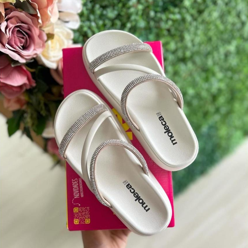 Tamanco Plataforma Moleca Tiras Strass Napa Slide Feminino