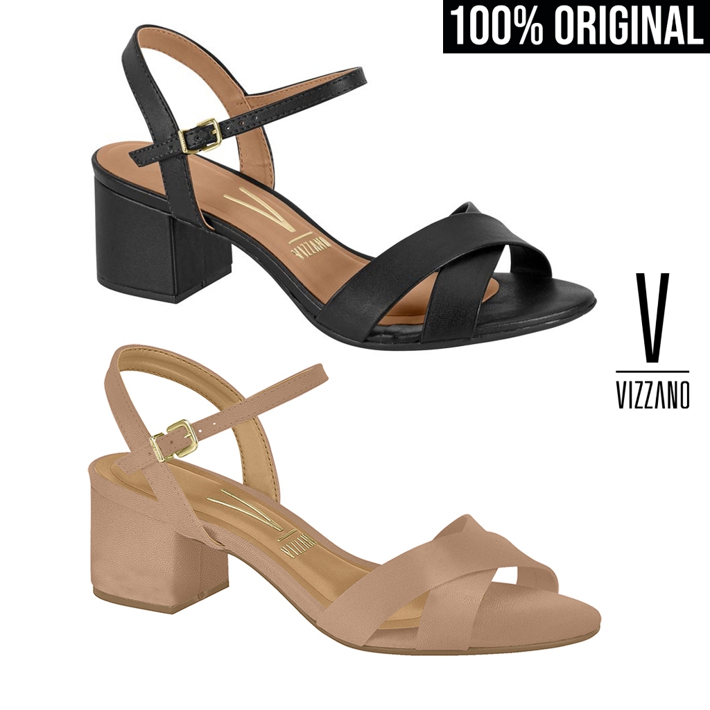 Sandália Feminina Vizzano Salto Grosso Médio Traseira Fechada Casual Original Confortável 6262406