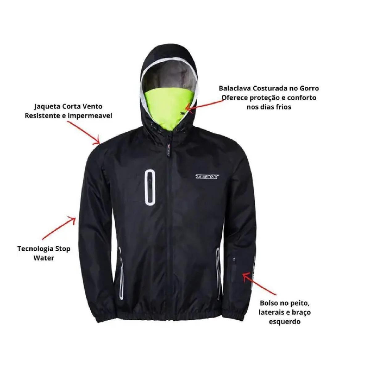 Jaqueta Texx Corta Vento Frio Inverno Neon Preto Impermeável Com Balaclava Moto Motoqueiro