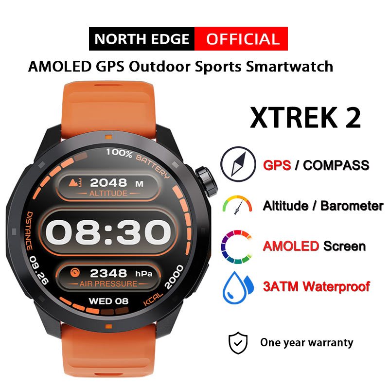 North EDGE XTREK 2 AMOLED Display GPS 3ATM Barômetro De Bússola À Prova D'água Altitude Esportes Ao Ar Livre Smartwatch Relógio Inteligente IOS Android Masculino