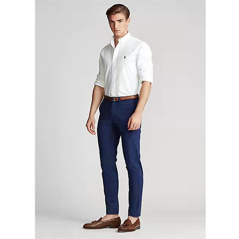 RalphLauren camisa americana de algodão masculino camisa polo casual de mangas compridas sem calor Paul plus size camisa branca sólida homem