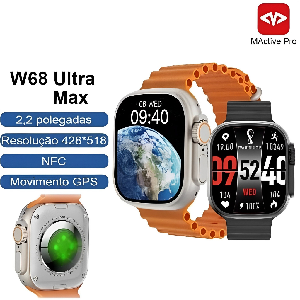 Smartwatch W68+ Ultra Max Watch 8 Ultra Max Relógio Inteligente Série 8 Tela 2.02 49mm Original Lançamento 2023 Película 3D
