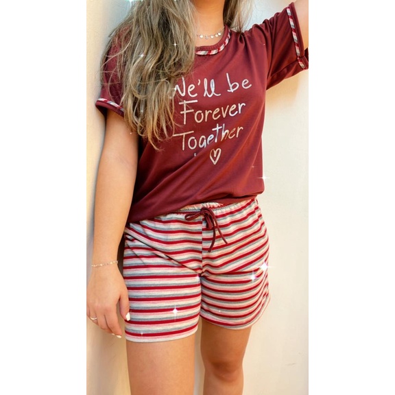 Pijama Feminino Manga Curta e Short Comprido Malha Adulto Baby doll