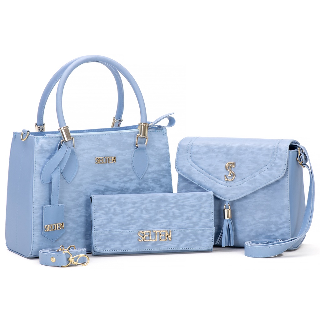Kit 3 Peças De Luxo Feminina Tira Colo Unissex Bolsa De Mão Transversal + Bolsa Tote Transversal + Carteira Varias Cores Lançamento Promoção