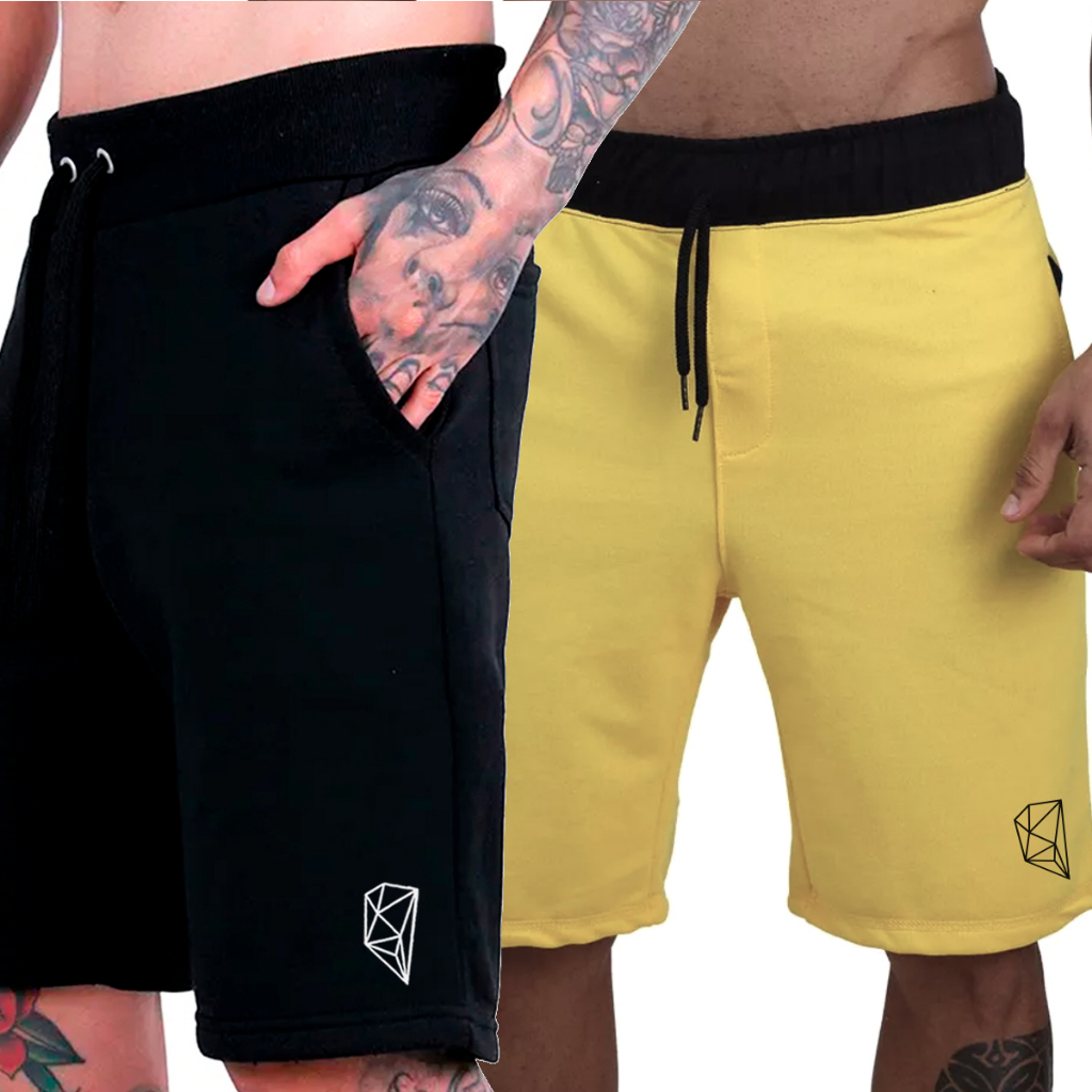 Kit 2 Bermuda Moletom Calção Grande Plus Size Pre Historic Academia Casual