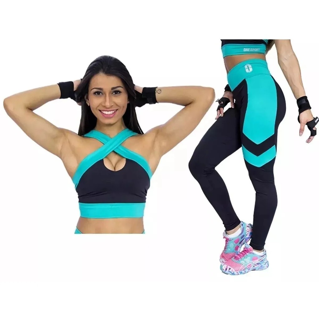 Kit Conjunto Academia Feminino Fitness Calça Legging Cintura Alta + Top em X