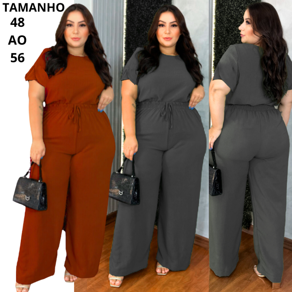 Conjunto Social Plus Size de Frio Inverno Calça Pantalona e Blusa Elegante Manga Curta gg Moletinho Agasalho