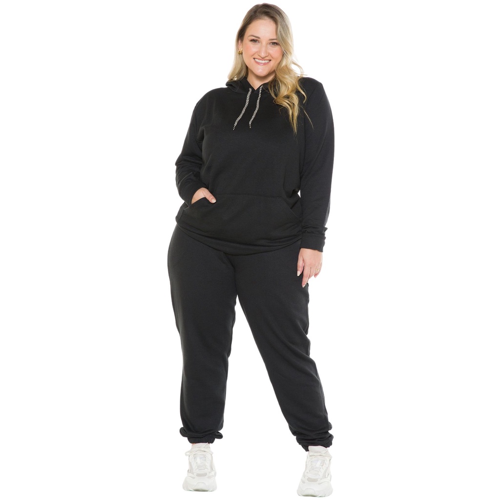 Conjunto Moletom Plus Size Blusa Canguru e Calça Plus Size Liso Masculino Feminino