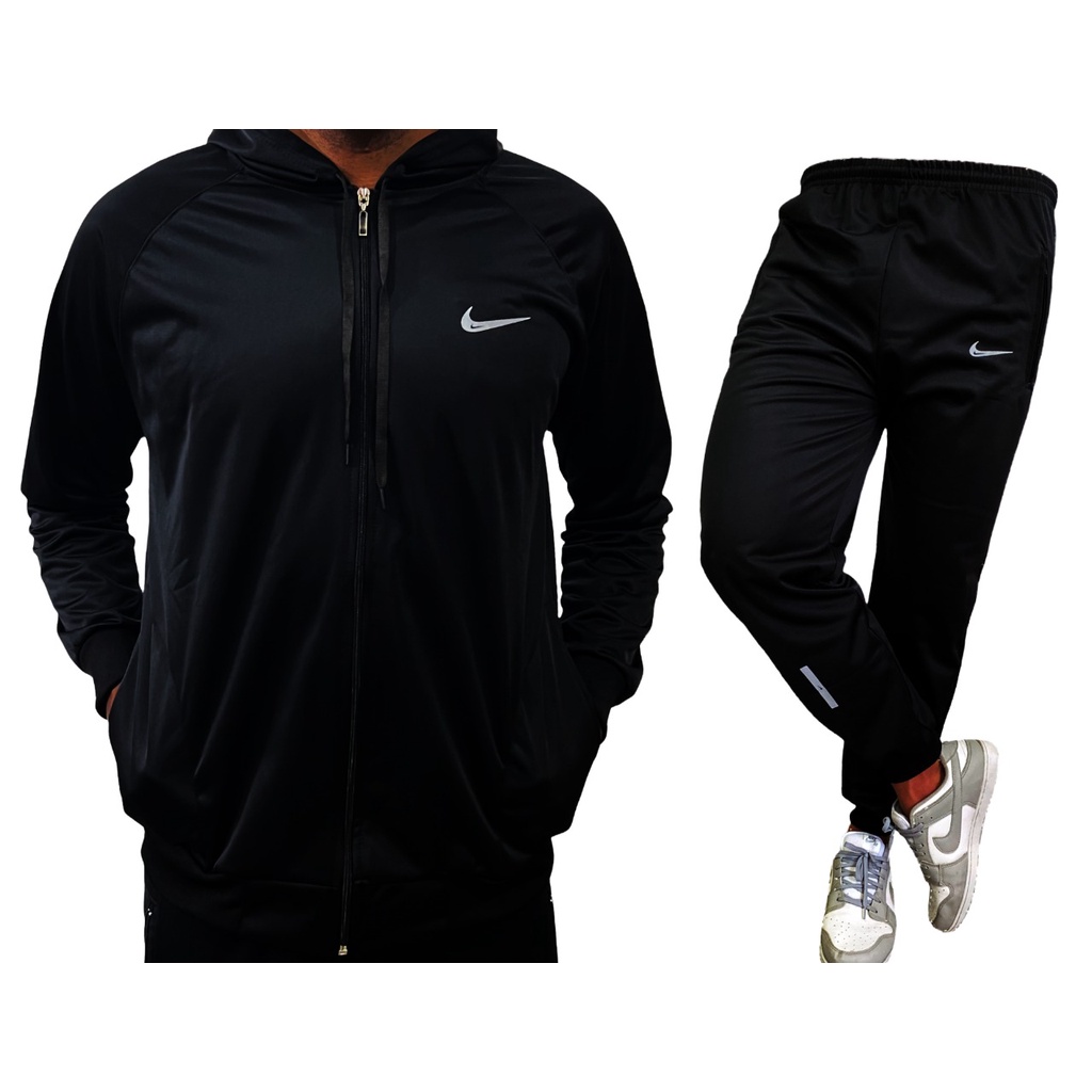 Conjunto Corta Vento Preto Dry Fit Blusa de Frio + Calça Jogger com Detalhe Refletivel