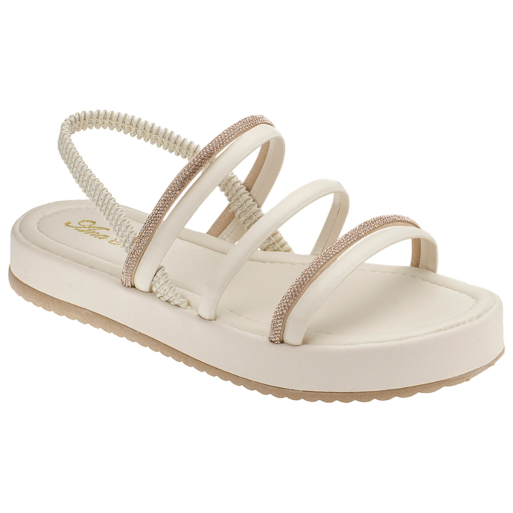 Sandalia Feminina Moleca Calce fácil Solado Tratorado Papete Flatform Salto Baixo Grosso Bloco Conforto Plataforma Tira Trança Brilho Strass Elástico Leve Palmilha Macia Confortável Casual Festa Saltinho Moda Verão