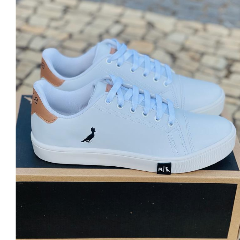 Tênis Casual Branco e Preto Couro Original Saymon Queen Unissex Masculino Feminino