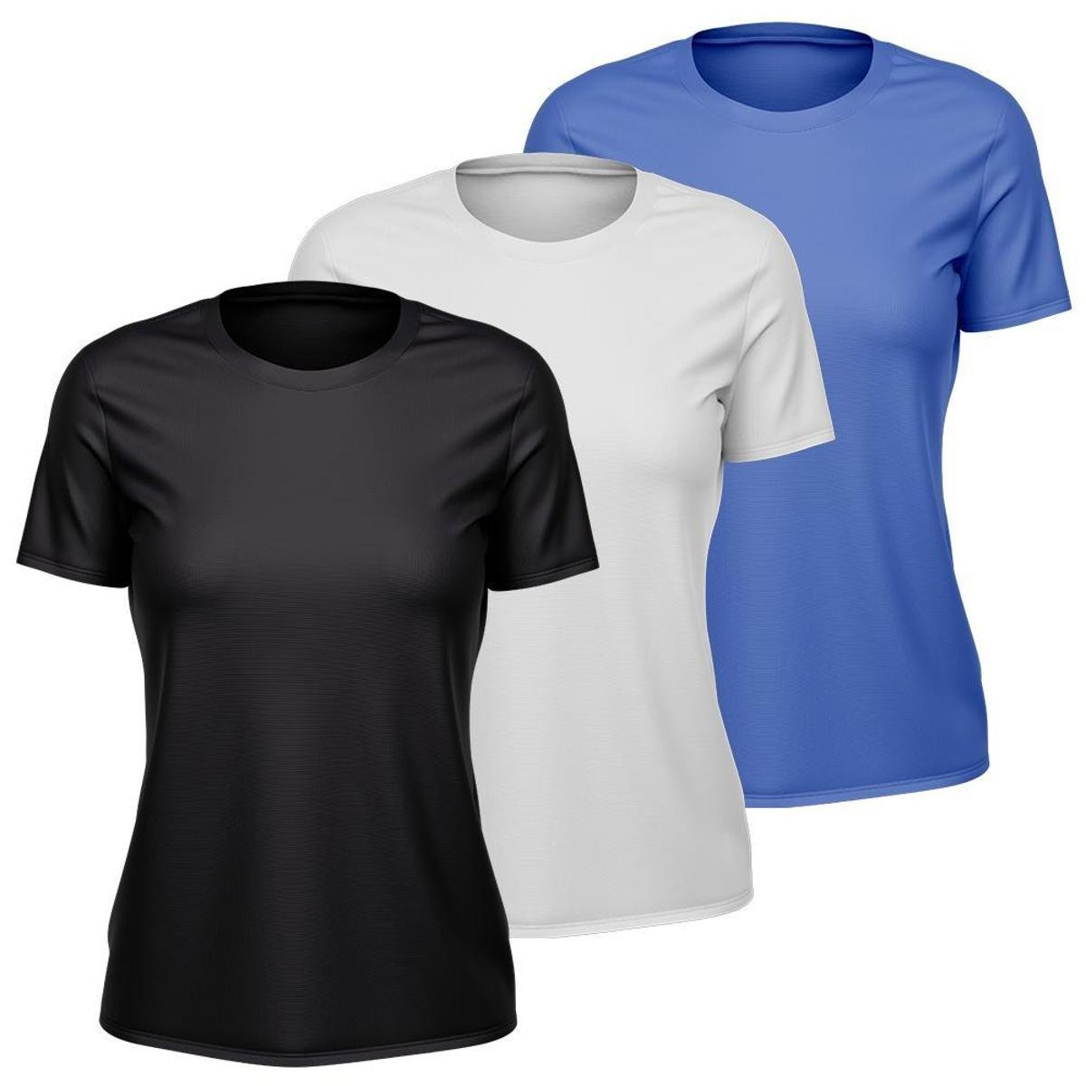 Kit 3 Camisetas Feminina Dry Manga Curta Proteção UV Slim Fit Básica Academia Treino Fitness