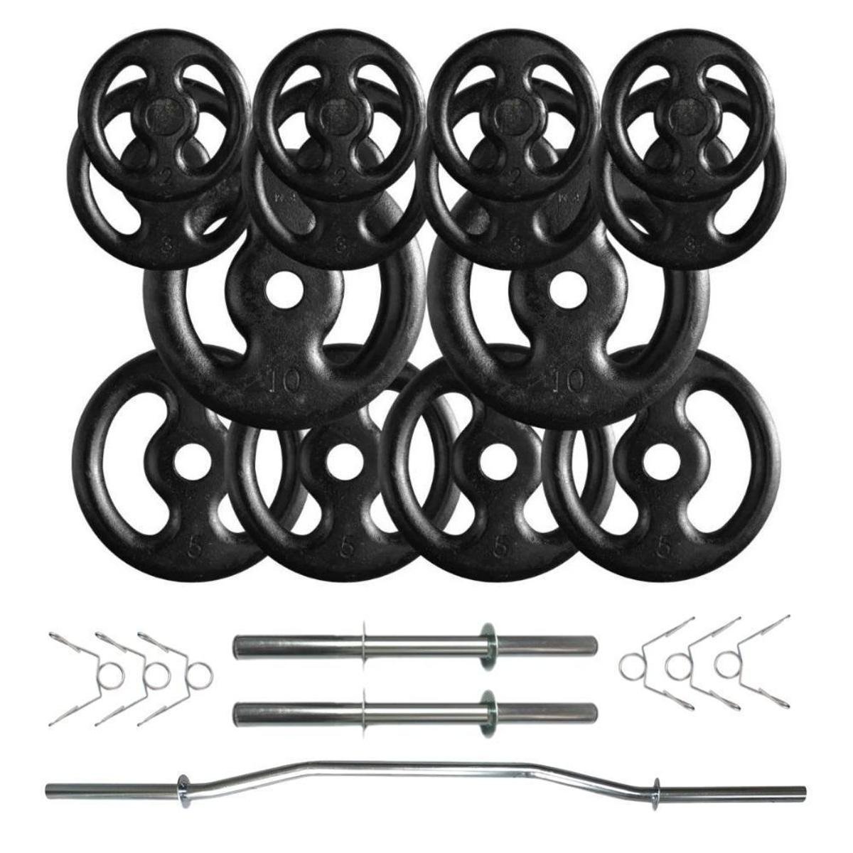 Kit 60 Kg de Anilhas Ferro Fundido + 02 Barras de 40cm + Barra W