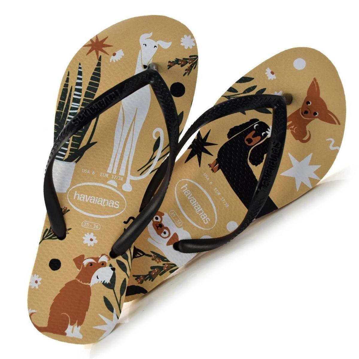 Chinelo Feminino Havaianas Slim Pets 4132567 Dourado/Preto 35/36