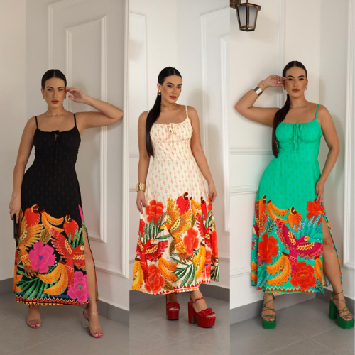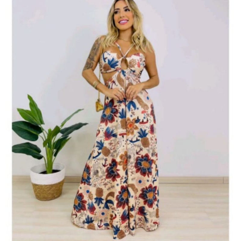 Vestido Feminino Longo Floral Inspiração Farm Verão moda premium Tendência Moda Blogueira Luxo
