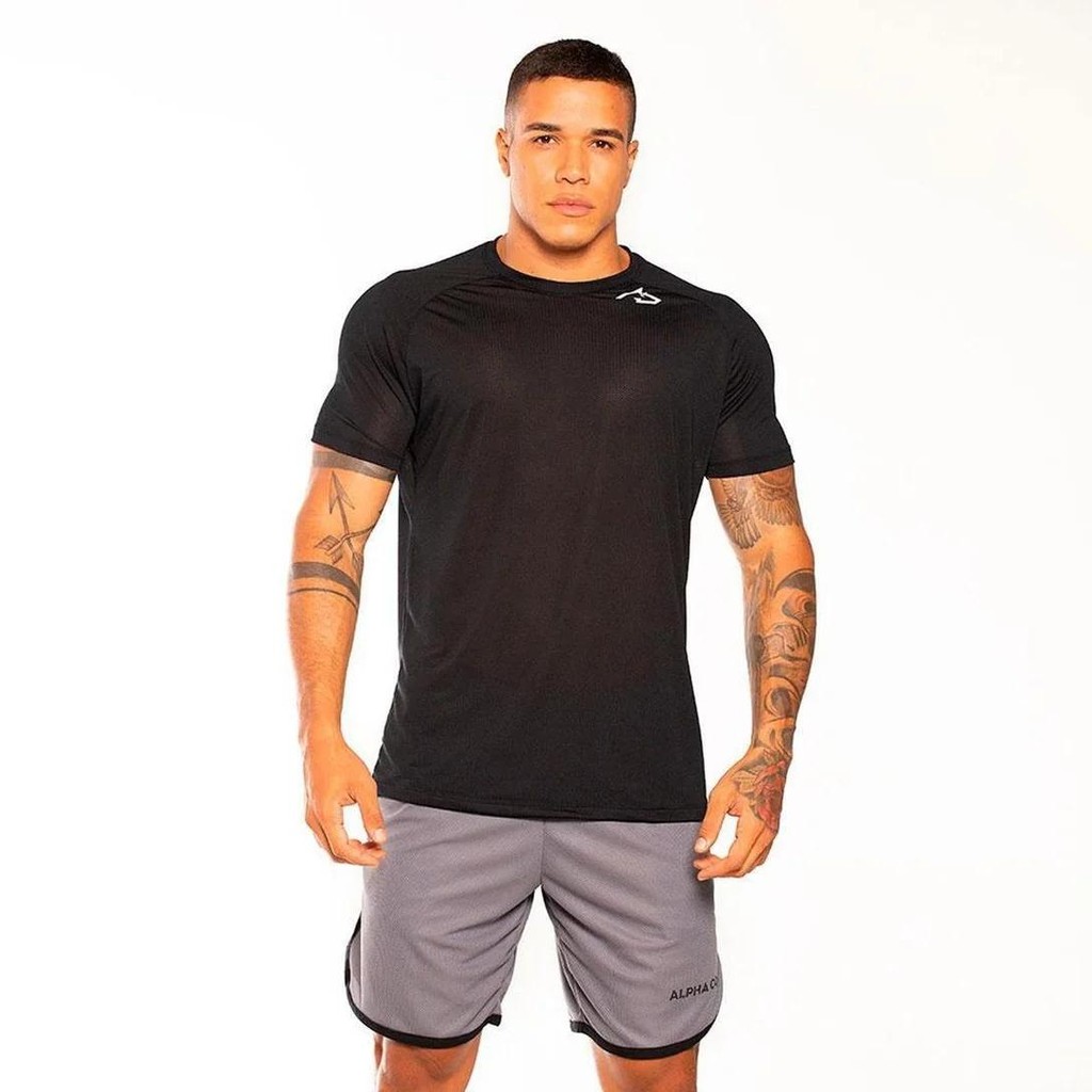 Camiseta Masculina Dry Fit Esportiva Essential Preto Alpha Co