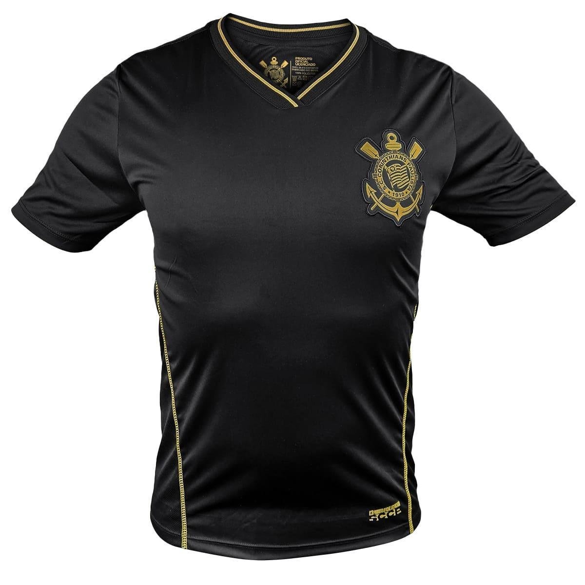 Camiseta Corinthians Dry Preta Gola V Masculina