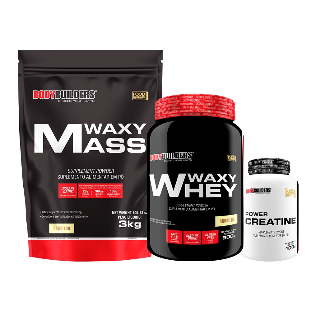 Kit Waxy Mass 3kg, Waxy Whey 900g, Power Creatina 100g - Bodybuilders