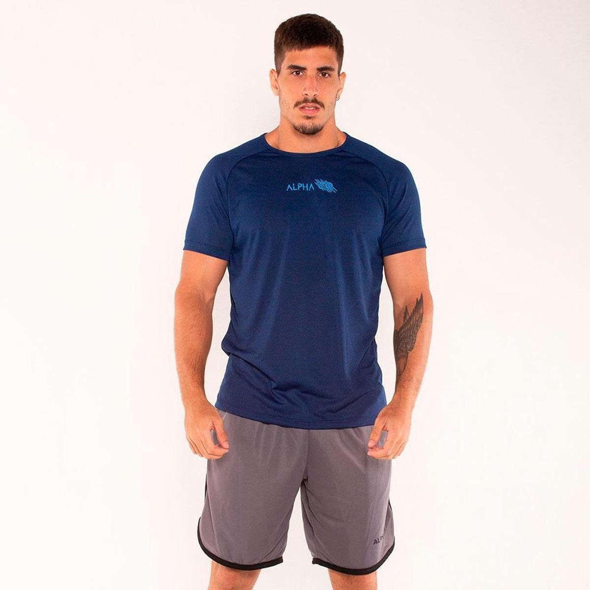 Camiseta Masculina Dry Fit Esportiva Academia Direction Azul Marinho Alpha Co