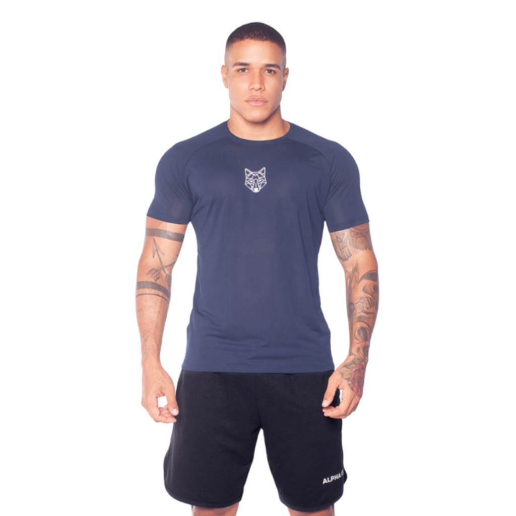 Camiseta Masculina Dry Fit Esportiva Lobo Azul Marinho Alpha Co