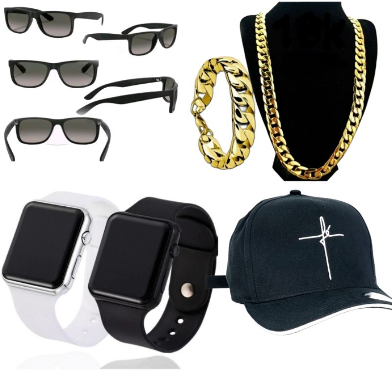 Kit Presente masculino Relógio digital + Bone Preto + oculos + Pulseira ou corrente dourada Menor preço