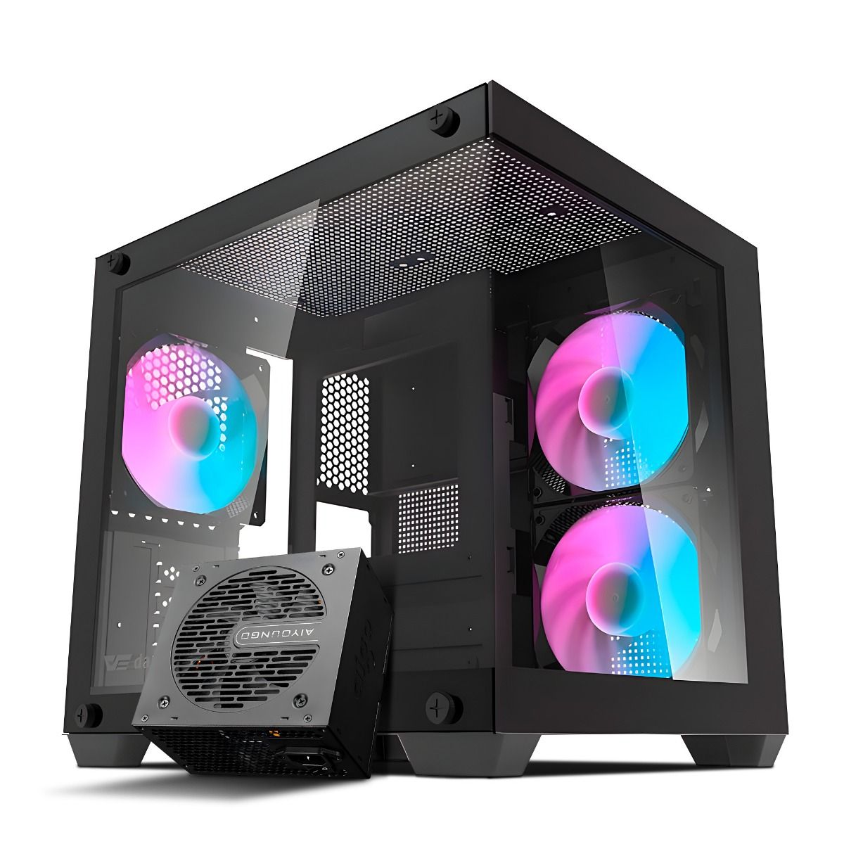 Gabinete Gamer Aigo Darkflash Durin D275M, Com 3 Fans, Preto + Fonte Aigo Darkflash 550W