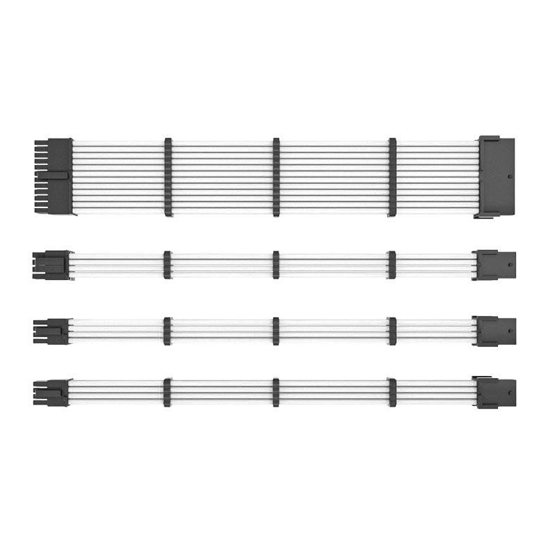 KIT 4 CABO SLEEVED FULL WHITE (BRANCO) EXTENSOR CABOS DA FONTE 1x 24 Pinos (Placa mâe) - 1x4+4 Pinos (CPU) - 2x6+2 Pinos (GPU)