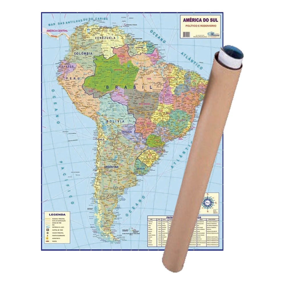 Mapa América do Sul Político e Rodoviário 120x90cm Gigante